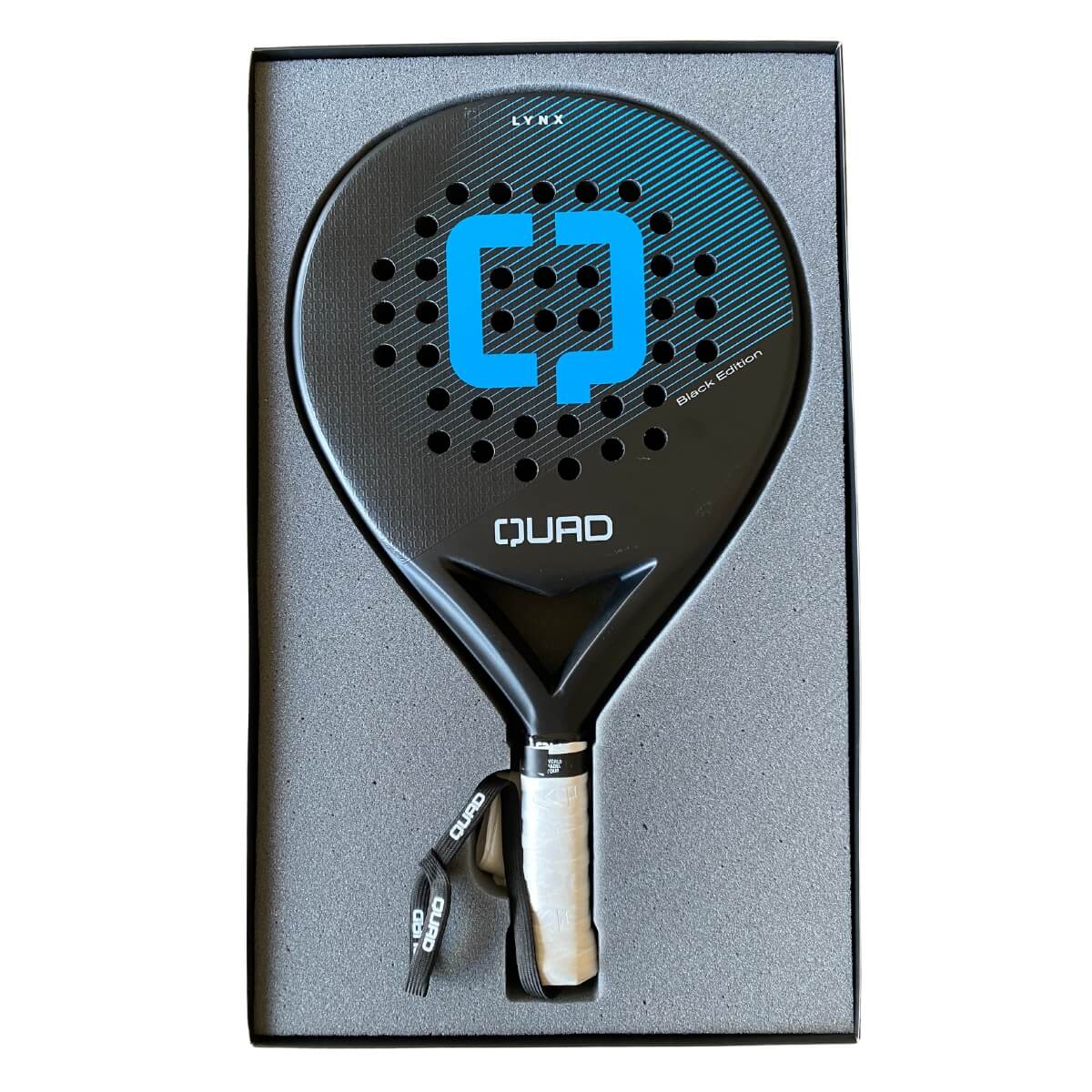 Het Quad Lynx Black Edition padel racket maakt deel uit van de nieuwe Black Edition-collectie, de eerste geproduceerd in Portugal. Het racket heeft de perfecte balans tussen kracht en een licht ontwerp, de sweet spot zit centraal. Het Lynx padel raket is een behendige racket voor controle en meer comfort in het spel. Deze testracket is in uitstekende staat, zonder gebruiksschade.
